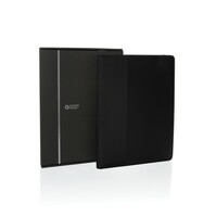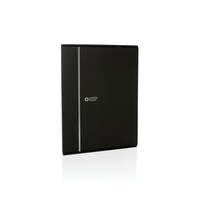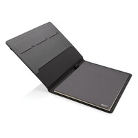 Teczka konferencyjna A4 z notatnikiem (20 kartek kremowych o gramaturze 70 g/m2 z certyfikatem FSC®), kieszenie i przegródki wewnątrz, pętla na długopis, wykonana w 100% z poliestru pochodzącego z recyklingu, posiada znacznik AWARE™, który gwarantuje, że wykorzystane materiały pochodzą z recyklingu, w pudełku z papieru z certyfikatem FSC®, ślad węglowy produktu: 1,23 kg CO2