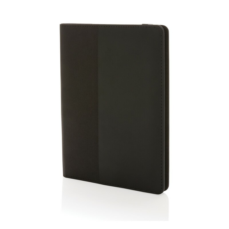 Teczka konferencyjna A5 z notatnikiem (20 kartek kremowych o gramaturze 80 g/m2 z certyfikatem FSC®), kieszenie i pętla na długopis wewnątrz, wykonana z PU i poliestru z recyklingu, posiada znacznik AWARE™, który gwarantuje, że wykorzystane materiały pochodzą z recyklingu, w pudełku z papieru z certyfikatem FSC®, ślad węglowy produktu: 0,91 kg CO2