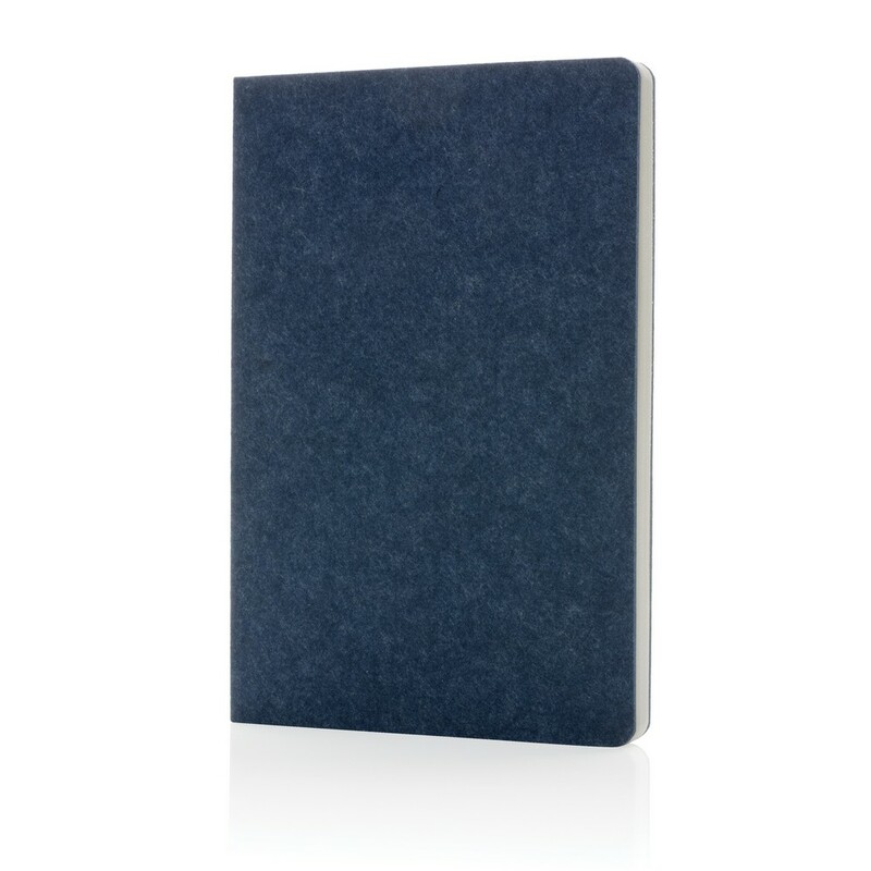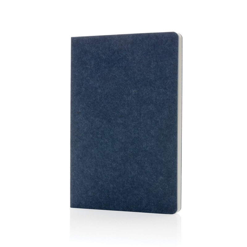 Notatnik (96 białych kartek 80 g/m2 w linie), wykonany z materiałów pochodzących z recyklingu z certyfikatem GRS, całkowita zawartość materiałów z recyklingu obliczona na podstawie wagi całkowitej przedmiotu: 99%, ślad węglowy produktu: 0,91 kg CO2