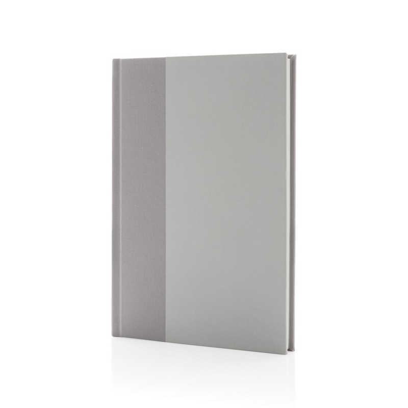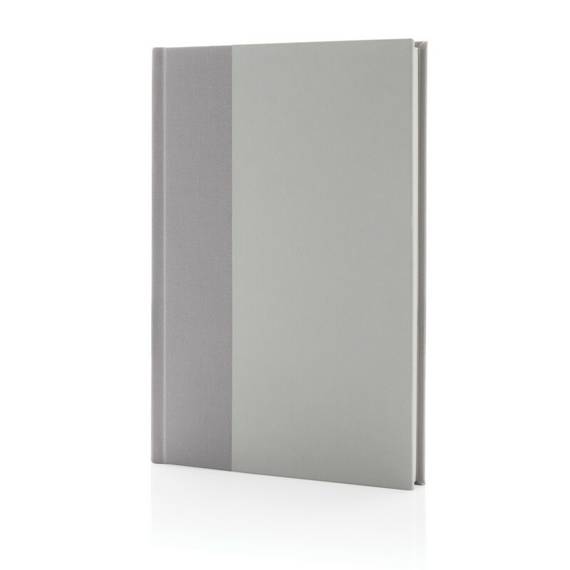 Notatnik (80 białych kartek 80 g/m2 w linie), twarda okładka, wykonany z materiałów pochodzących z recyklingu z certyfikatem GRS, całkowita zawartość materiałów z recyklingu obliczona w oparciu o wagę całkowitą przedmiotu: 99%, ślad węglowy produktu: 0,56 kg CO2