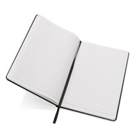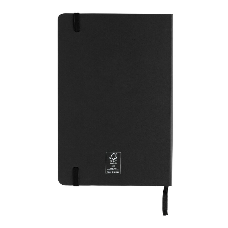Notatnik A5 (80 białych kartek w linie o gramaturze 120 g/m2), okładka wykonana z papieru kraftowego z certyfikatem FSC®, tasiemka zakładkowa, strony z papieru kamiennego, w opakowaniu z papieru kraftowego z certyfikatem FSC® mix, ślad węglowy produktu: 1 kg CO2
