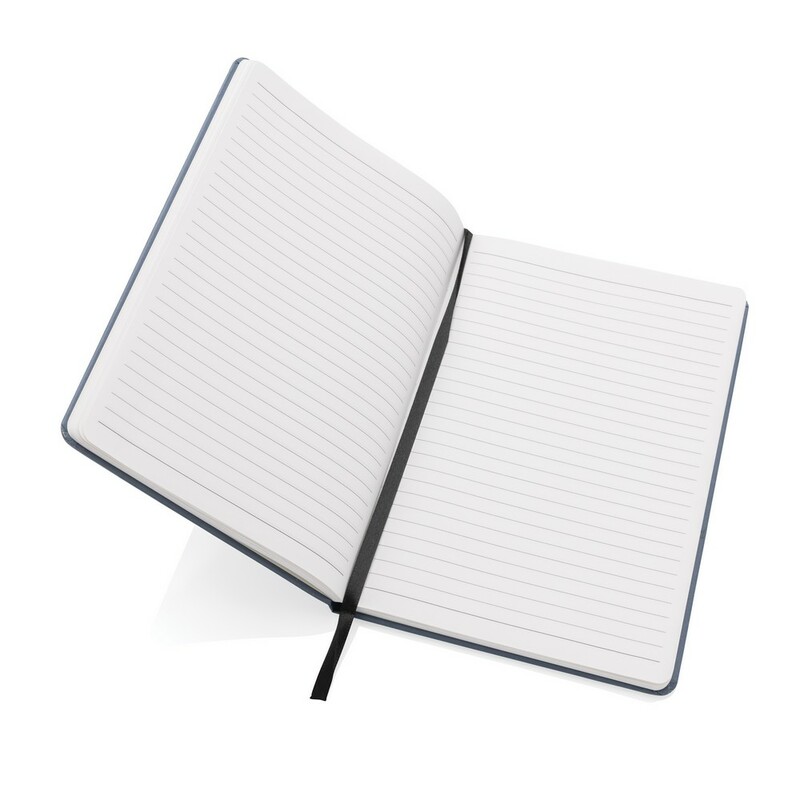 Notatnik A5 (80 białych kartek w linie o gramaturze 120 g/m2), okładka wykonana z papieru kraftowego z certyfikatem FSC®, tasiemka zakładkowa, strony z papieru kamiennego, w opakowaniu z papieru kraftowego z certyfikatem FSC® mix, ślad węglowy produktu: 1 kg CO2