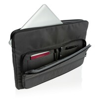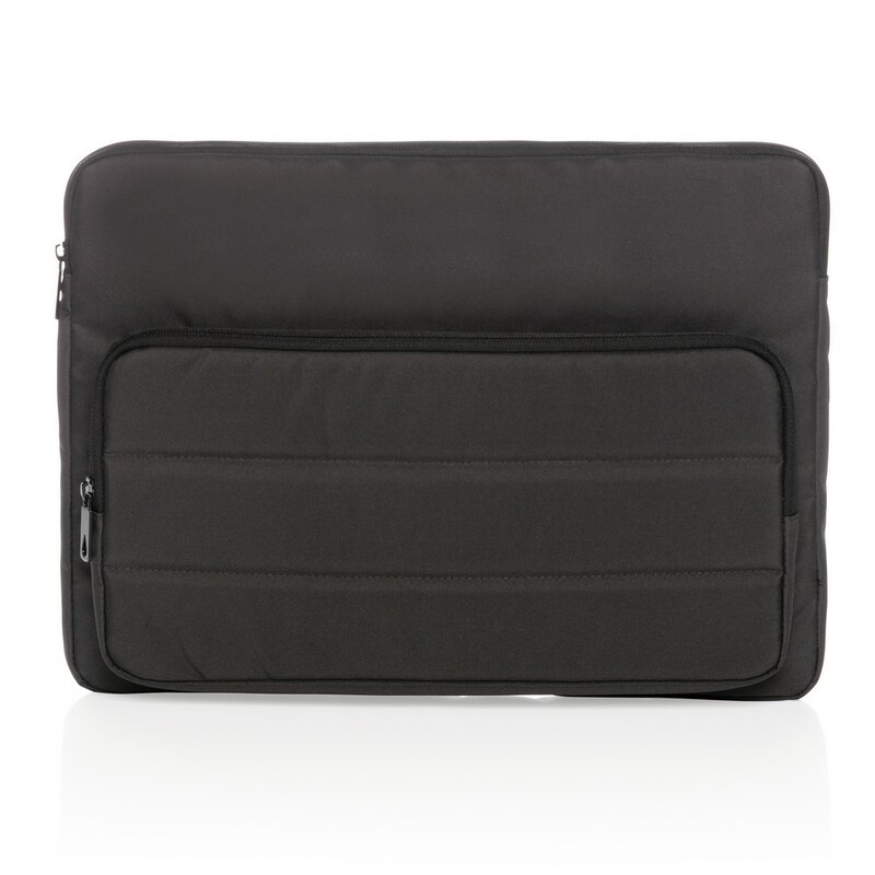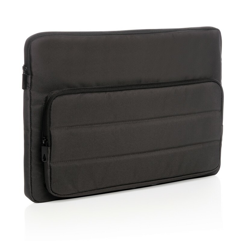 Pokrowiec na laptopa 15,6", w przedniej kieszeni zamykanej na zamek błyskawiczny 2 dodatkowe kieszenie z miejscem na 2 akcesoria piśmiennicze, pokrowca można używać samodzielnie lub umieścić go w torbie lub plecaku, tkanina zewnętrzna i poszewka wewnętrzna wykonane z pochodzącego z poliestru AWARE™ RPET, który został wykonany z butelek PET pochodzących z recyklingu z identyfikowalnym źródłem, produkt został wykonany z 16 butelek plastikowych poddanych recyklingowi, a 2% zysku ze sprzedaży każdego jest przekazywane do fundacji Water.org, nie zawiera PVC