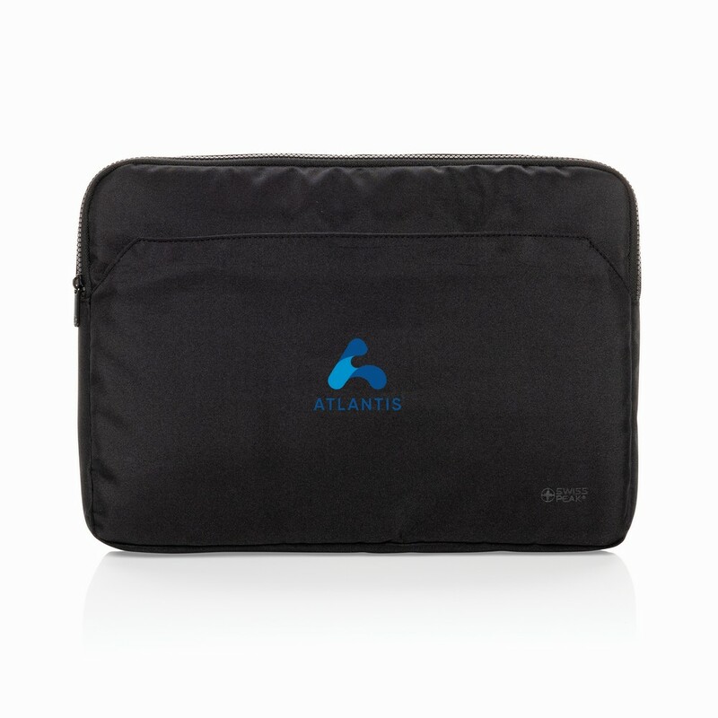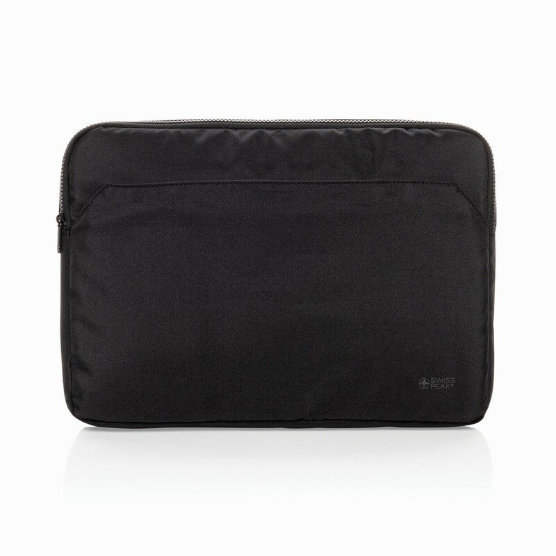 Pokrowiec na laptopa 15,6" AWARE™ RPET, wykonany w 100% z recyklingowanego poliestru RPET z podszewką RPET, główna przegroda na laptopa do 15,6", przednia kieszeń na akcesoria, trwałe zamki błyskawiczne Swiss Peak, elegancki i profesjonalny design, bez PVC, 2% dochodu przeznaczone na Water.org