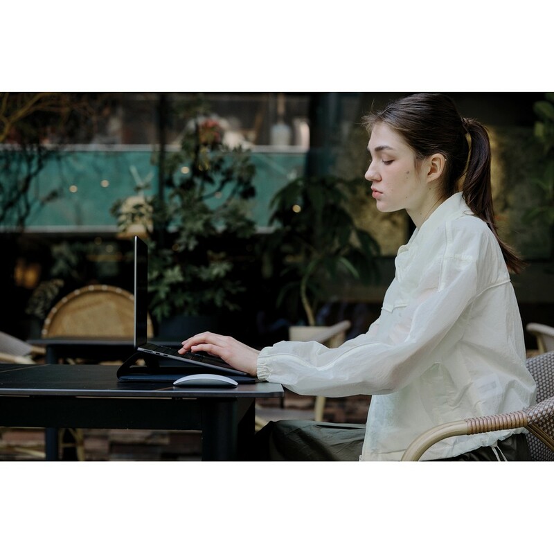 Pokrowiec na laptopa 14”, stojak na laptopa, z tyłu kieszeń na drobne akcesoria, wykonany z materiałów z recyklingu, wzór zastrzeżony®