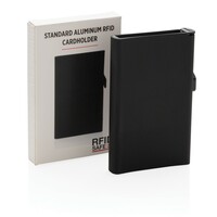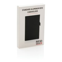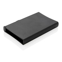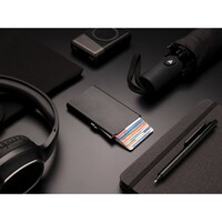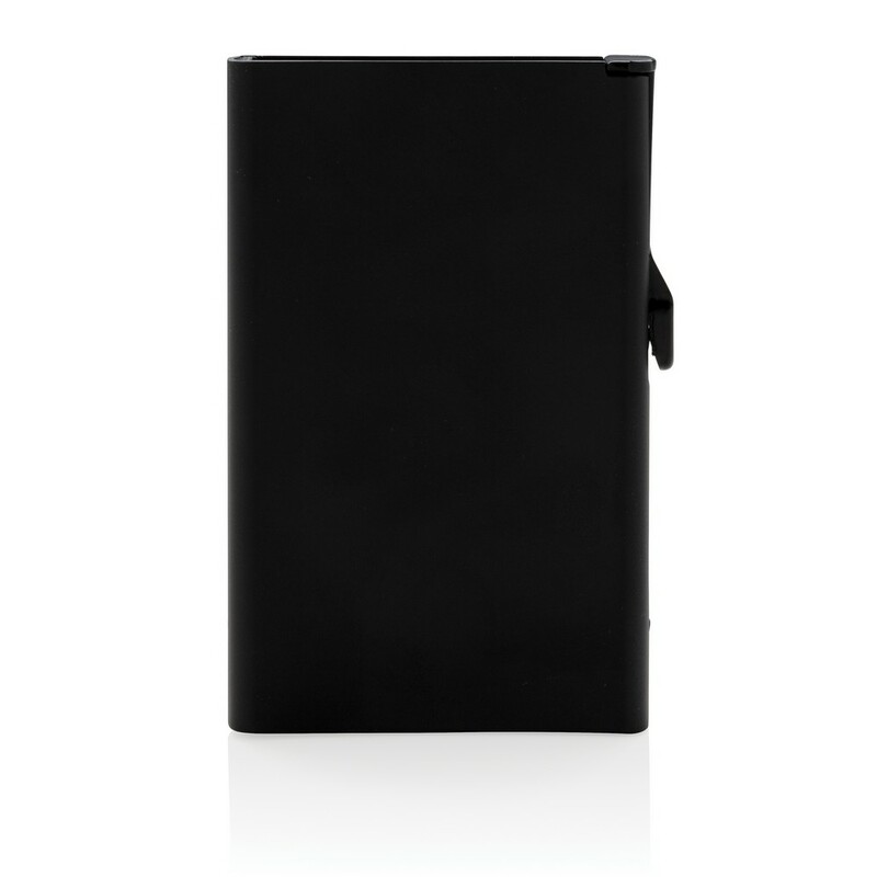 Etui na karty kredytowe z ochroną RFID, wykonane z wytrzymałego aluminium, mieści do 10 kart lub do 6 z tłoczeniem, posiada suwak boczny do wysuwania kart, ślad węglowy produktu: 0,67 kg CO2