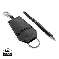 Zestaw upominkowy, brelok, organizer do kluczy, długopis, brelok wykonany z PU z recyklingu, długopis wykonany z aluminium z recyklingu z certyfikatem RCS, całkowita zawartość materiałów z recyklingu obliczona w oparciu o wagę całkowitą przedmiotu: brelok 11%, długopis 8%, w pudełku upominkowym