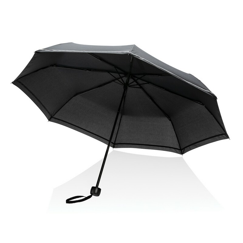 Parasol 20,5", manualne otwieranie, metalowa rama i żebrowanie, uchwyt z PP, panele wykonane z 7,6 poddanych recyklingowi butelek PET (500 ml), dzięki zastosowaniu technologii AWARE™ wykorzystane materiały są identyfikowalne z pochodzenia, 2% wpływów z każdego sprzedanego produktu z kolekcji Impact jest przekazywane na rzecz Water.org