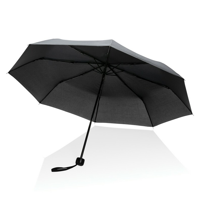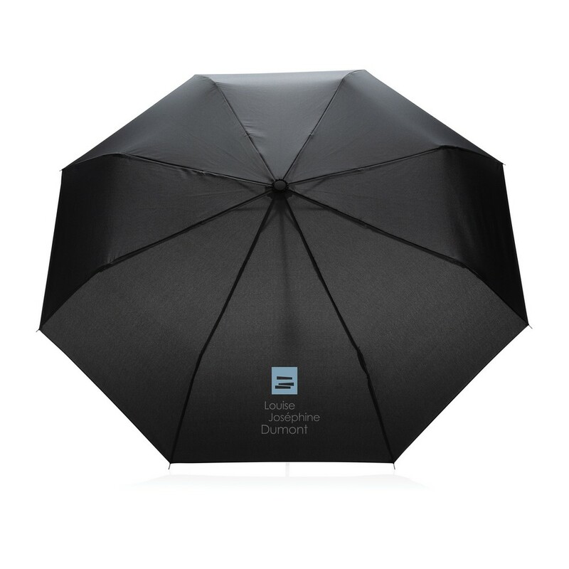 Parasol 21", manualne otwieranie, metalowa rama, żebrowanie z włókna szklanego, uchwyt z PP, panele wykonane z 7,1 poddanych recyklingowi butelek PET (500 ml), dzięki zastosowaniu technologii AWARE™ wykorzystane materiały są identyfikowalne z pochodzenia, 2% wpływów z każdego sprzedanego produktu z kolekcji Impact jest przekazywane na rzecz Water.org