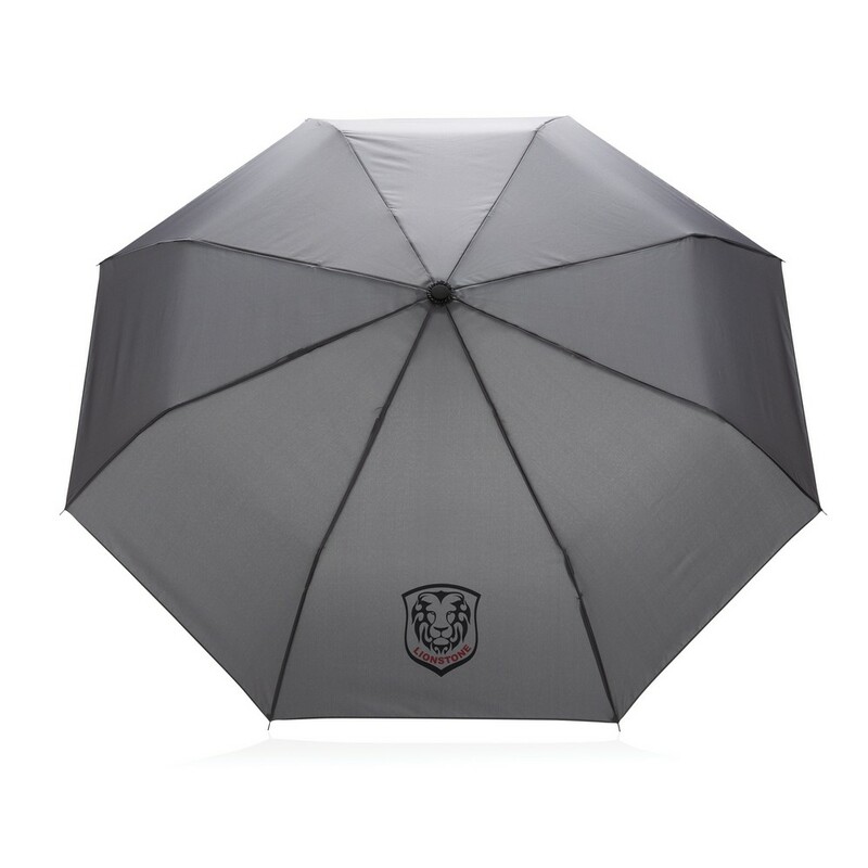 Parasol 21", manualne otwieranie, metalowa rama, żebrowanie z włókna szklanego, uchwyt z PP, panele wykonane z 7,1 poddanych recyklingowi butelek PET (500 ml), dzięki zastosowaniu technologii AWARE™ wykorzystane materiały są identyfikowalne z pochodzenia, 2% wpływów z każdego sprzedanego produktu z kolekcji Impact jest przekazywane na rzecz Water.org