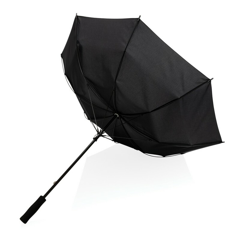 Parasol sztormowy 23", manualne otwieranie, metalowa rama, żebrowanie z włókna szklanego, uchwyt z EVA, panele wykonane z 7,5 poddanych recyklingowi butelek PET (500 ml), dzięki zastosowaniu technologii AWARE™ wykorzystane materiały są identyfikowalne z pochodzenia, 2% wpływów z każdego sprzedanego produktu z kolekcji Impact jest przekazywane na rzecz Water.org