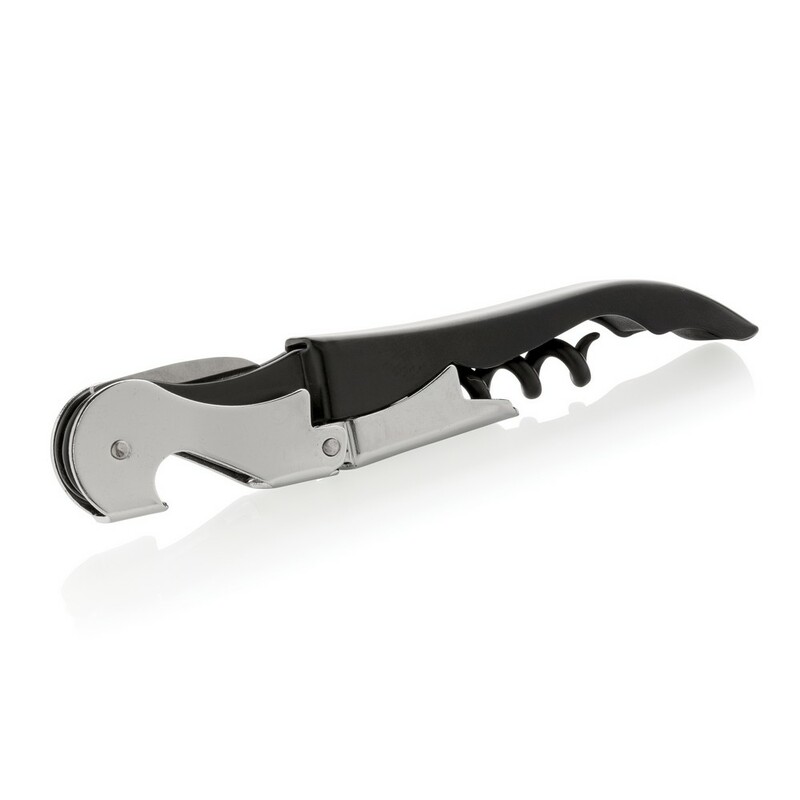 Nóż kelnerski, funkcje: dwustopniowy korkociąg, nóż do folii, otwieracz do butelek, w ozdobnym pudełku, ślad węglowy produktu: 0,41 kg CO2