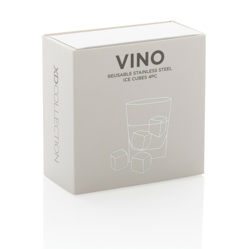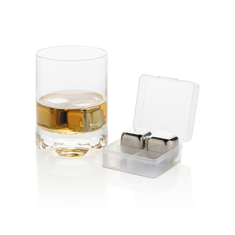 Zestaw chłodzących kostek do napojów 4 el., pozwalają na schłodzenie napoju bez jego rozcieńczania, wykonane ze stali nierdzewnej, kostki należy umieścić na 3 godziny w zamrażarce przed użyciem, w pudełku, ślad węglowy produktu: 1,57 kg CO2
