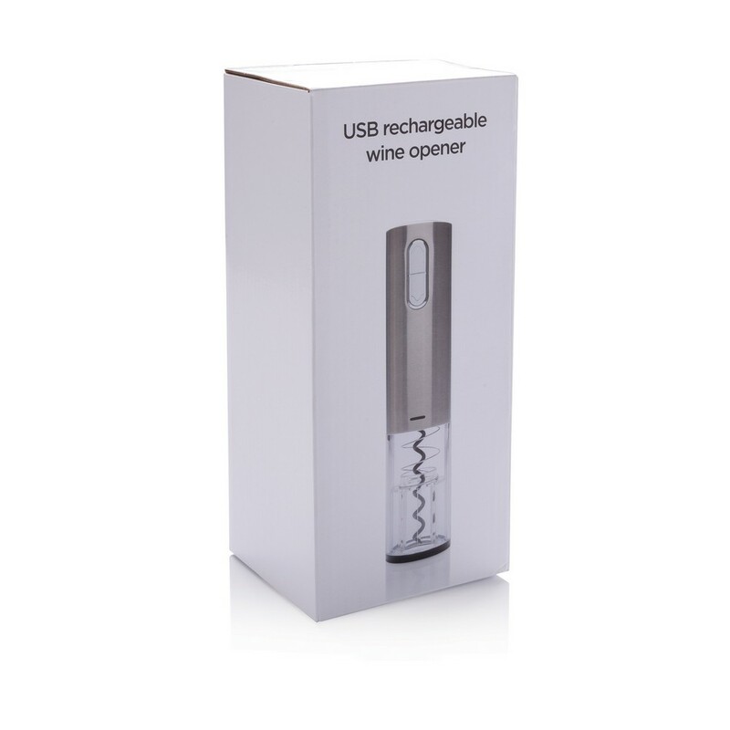 Korkociąg elektryczny, wbudowany akumulator litowy 3.6V, niebieska lampka, otwarcie butelki wina w zaledwie 8 sekund, kabel micro USB do ładowania w komplecie, w ozdobnym pudełku, ślad węglowy produktu: 2,16 kg CO2