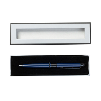 Metalowy długopis z końcówką przystosowaną do ekranów dotykowych w upominkowym pudełku. Wkład w kolorze niebieskim.