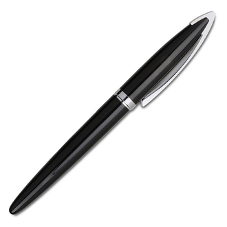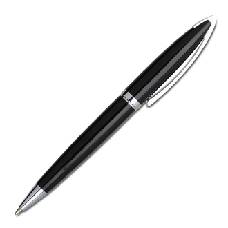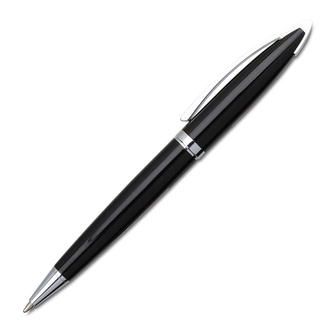 Bardzo elegancki zestaw składający się z metalowego długopisu i pióra kulkowego. Wkłady w kolorze niebieskim. Obrotowy mechanizm włączania.