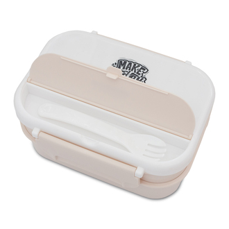 Praktyczny pojemnik na lunch. Składa się z dwóch pojemnych pojemników i przegródki z widelcem. Pojemność 1200 ml.