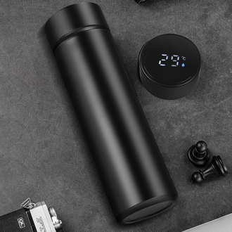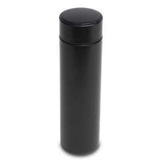 Termos próżniowy o pojemności 420 ml z dwiema metalowymi ściankami, świetnie utrzymujący ciepło, szczelny. Wnętrze wykonane ze stali nierdzewnej 18/8 o podwyższonej jakości. Posiada wbudowany w nakrętkę termometr z wymienna baterią CR2032, który przy dotknięciu wyświetlacza pokazuje temperaturę napoju . W zestawie stalowe siteczko do zaparzania herbaty. Matowe wykończenie powierzchni. Utrzymuje temperaturę powyżej 40°C przez 15 godzin.