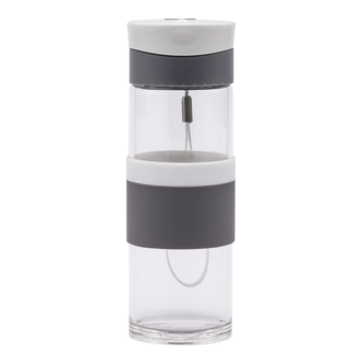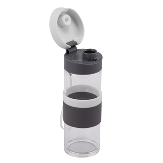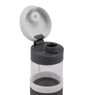Szczelny bidon o pojemności 440 ml. Wykonany ze specjalnego szkła borokrzemowego, które jest nadzwyczaj przyjazne naszemu zdrowiu, a także lżejsze od tradycyjnego szkła. Bidon wyposażony jest w uchwyt na nadgarstek, opaskę do trzymania oraz szczelne zamknięcie typu leak proof zapobiegające wyciekaniu płynów. Nie zawiera BPA.