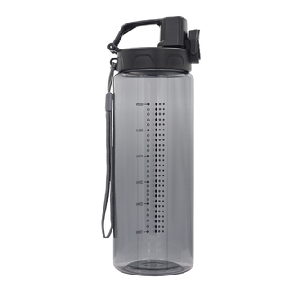 Bidon 700 ml wykonany z tritanu, wytrzymałego i przejrzystego tworzywa niezawierającego BPA. Bidon posiada miarkę, uchwyt na nadgarstek, funkcję podwójnego zabezpieczenia przed wylaniem wody - przycisk i haczyk. Co istotne, jest łatwy w myciu.