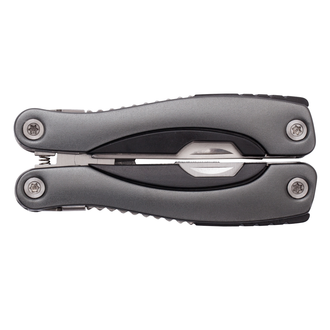 Narzędzie 9-funkcyjne pakowane w poliestrowe etui. Ostrza wykonane ze stali nierdzewnej. Narzędzie zawiera: piłę, wkrętaki płaskie, otwieracz do konserw, pilnik, szczypce uniwersalne, skrobak do ryb z końcówką do haczyków wędkarskich, otwieracz do butelek, wkrętak PH krzyżakowy, nóż.