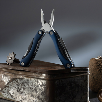 Narzędzie 9-funkcyjne pakowane w poliestrowe etui. Ostrza wykonane ze stali nierdzewnej. Narzędzie zawiera: piłę, wkrętaki płaskie, otwieracz do konserw, pilnik, szczypce uniwersalne, skrobak do ryb z końcówką do haczyków wędkarskich, otwieracz do butelek, wkrętak PH krzyżakowy, nóż.