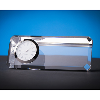 Kryształowy przycisk do papieru z zegarem. Pakowany w czarne upominkowe pudełko. W zestawie bateria AG4 1szt.