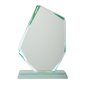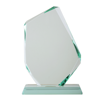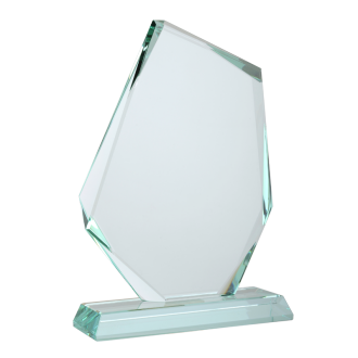 Szklane trofeum w kształcie szlachetnego kamienia. Pakowane w czarne eleganckie pudełko.