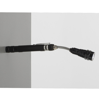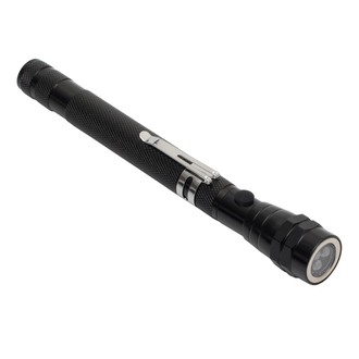 Metalowa wysuwana latarka. Teleskop o długości 38,5 centymetrach Wyposażona w 3 białe diody LED, o sumarycznym strumieniu światła 10 lumenów. Zaopatrzona w klips oraz magnesy na obu końcach. Zasilana 4 bateriami typu AG13 (w cenie produktu).