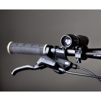 Latarka rowerowa z diodą XPE CREE 3W. Oświetlana odległość 20 m. Posiada 3 tryby świecenia. W zestawie z uchwytem do roweru. Zasilana 3 bateriami alkalicznymi AAA (dołączone do produktu).