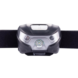 Latarka czołowa o strumieniu światła 80 lumenów. Dioda CREE 3 W, regulacja kąta nachylenia (36°), oświetlana odległość: 20 m. Regulowany pasek na głowę/kask/czapkę. Zasilana akumulatorem 1200 mAh Li-ion. Latarka posiada czujnik ruchu. Funkcja ta pozwala na oświetlenie miejsca pracy lub otoczenia bez zajmowania rąk, co znacząco wpływa na komfort wykonywanych czynności.
