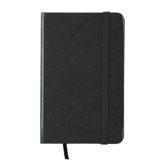 Notatnik w twardej oprawie z elastyczną gumką chroniącą wnętrze. Papier kremowy chamois w kratkę o gramaturze 70 g/m2 o wymiarze 9 x 14 cm, 80 kartek, tasiemka do zaznaczania ostatniej zapisanej strony. Rozmiar kieszonkowy.