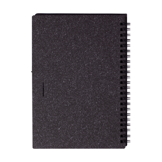 Eko notes w twardej oprawie z dołączonym długopisem w rozmiarze biurkowym (zbliżony do A5 lub większy). 70 kartek w linie (z perforacją), gramatura 70 g/m². Zarówno oprawa jak i papier wykonane zostały z surowców wtórnych. Nadają się one także do kolejnego przetworzenia. Korpus długopisu wykonany z tektury, klip, końcówka i przycisk wykonane z plastiku nadającego się do recyclingu, wkład w kolorze niebieskim. Notes posiada uchwyt na długopis.