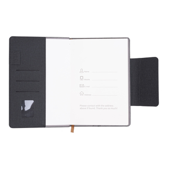 Elegancki notes w linie, posiada kieszonki na wizytówki. Zamykany na magnetyczne zapięcie.