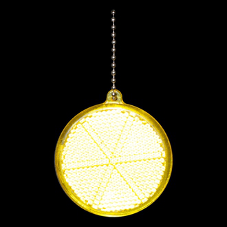 Brelok w powłoką odbijającą światło w kształcie kółka z rozpinaną zawieszką.