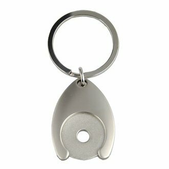 Wykonany z metalu brelok z żetonem. Żeton o wielkości 1 zł / 1 EUR. Pakowany w czarne kartonowe opakowanie upominkowe.