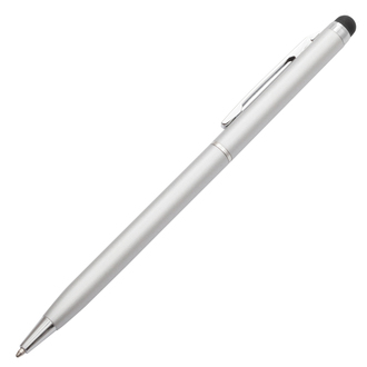 Długopis z końcówką przystosowaną do ekranów dotykowych. Korpus wykonany z aluminium, skuwka z metalu. Wkład w kolorze niebieskim. Posiada obrotowy mechanizm włączania.