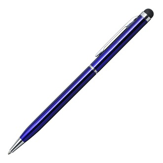 Długopis z końcówką przystosowaną do ekranów dotykowych. Korpus wykonany z aluminium, skuwka z metalu. Wkład w kolorze niebieskim. Posiada obrotowy mechanizm włączania.