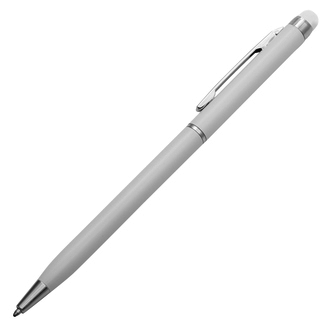 Długopis z końcówką przystosowaną do ekranów dotykowych. Korpus wykonany z aluminium, skuwka z metalu. Wkład w kolorze niebieskim. Posiada obrotowy mechanizm włączania.