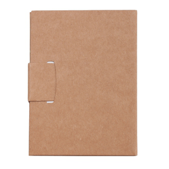 Mini notes w okładce z papieru o gramaturze 500 g/m2. Zawiera 100 białych gładkich kartek (80 g/m2) o wymiarze 78x107 mm, 5x25 szt. karteczek samoprzylepnych (80 g/m2) o wymiarze 12x45 mm oraz kartonowy mini-długopis (87x10x12 mm) z plastikowymi elementami. Wkład w kolorze niebieskim. Rozmiar kieszonkowy.