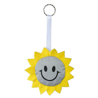 Brelok „Słońce” wykonana z filcu i materiału odbijającego światło.