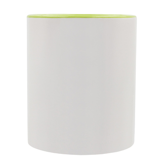 Kubek ceramiczny o pojemności 330 ml, przygotowany pod nadruk sublimacyjny, z kolorowym uchwytem i wnętrzem.