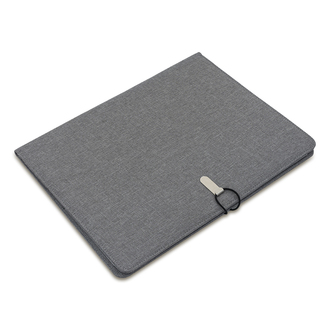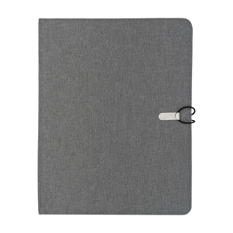 Teczka A4 z okładką wykonaną z poliestru z recyklingu. Zawiera notes w linie, trzy duże przegrody, kieszonkę na wizytówki oraz uchwyt na długopis. Teczka zapinana jest na gumkę zaczepianą o metalowy haczyk.