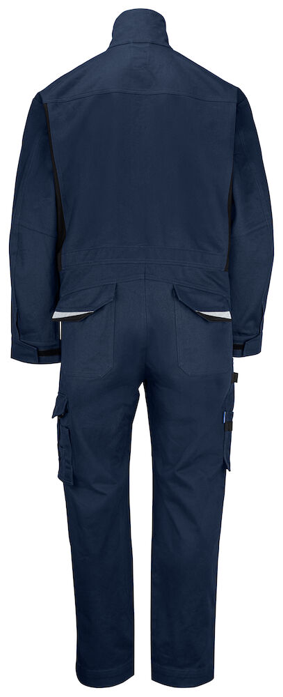 Kombinezon z dwustronnym zamkiem błyskawicznym z przodu, zabezpieczonym klapą. Kieszenie na piersi z zapięciem na rzep po obu stronach. Głębokie kieszenie boczne po obu stronach z otworami umożliwiającymi dostęp do kieszeni w spodniach pod kombinezonem. Kieszenie na długopisy, papiery i inne drobiazgi znajdują się na piersi po obu stronach, przy czym lewa kieszeń jest dodatkowo wyposażona w uchwyt do zamocowania identyfikatora i zamykana na rzep. Na lewej stronie nogawki znajduje się obszerna kieszeń z klapą i zapięciem na rzep, a także wewnętrzna kieszeń na telefon. Po prawej stronie znajdują się kieszenie na długopisy, papier i składaną miarkę. Tylna kieszeń również posiada klapę i zapięcie na rzep. Kombinezon wyposażony jest w regulowaną talię za pomocą wewnętrznego sznurka oraz regulowane mankiety na rzep. Dodatkowo, wewnątrz znajdują się kieszenie na ochraniacze na kolana. Długość nogawki można wydłużyć o 5 cm, zapewniając doskonałe dopasowanie i wygodę noszenia.