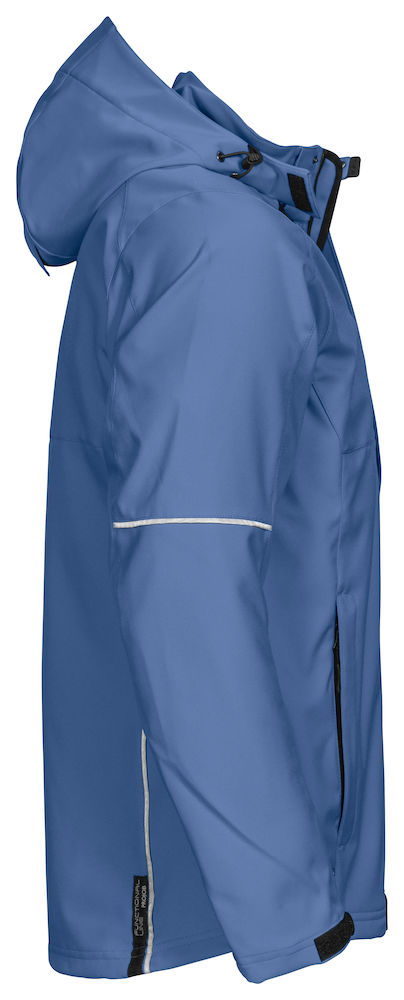 Funkcjonalna kurtka softshell, warstwa 3, wodoodporna. Dwie kieszenie na piersi, lewa z przestrzenią na telefon. Miejsce na identyfikator. Dwie kieszenie boczne. Kieszeń na ramieniu. Wewnętrzna kieszeń po lewej stronie z łatwym dostępem. Zamki wentylacyjne pod pachami. Sznurek w pasie. Łatwe w dopasowaniu mankiety. Przedłużony panel tylni dla większego komfortu. Odblaskowe wstawki na rękawach i z tyły. Odczepiany kaptur. Kołnierz wyłożony polarem.