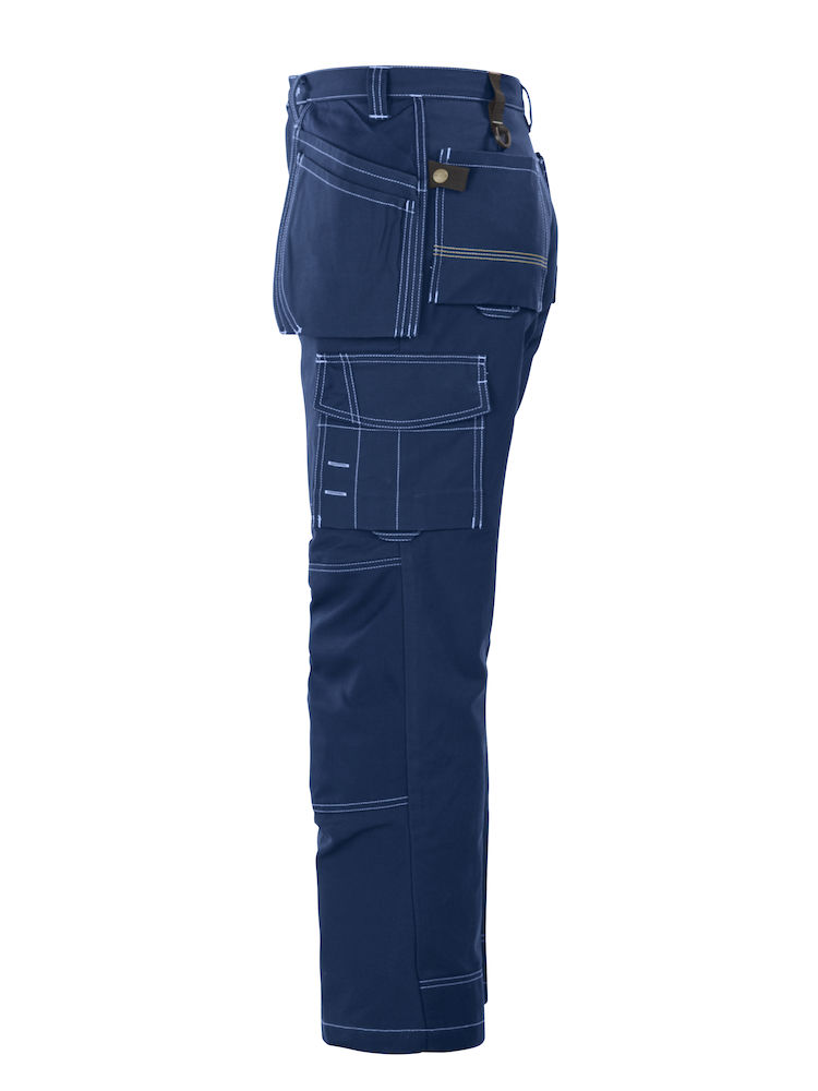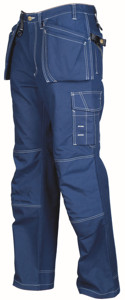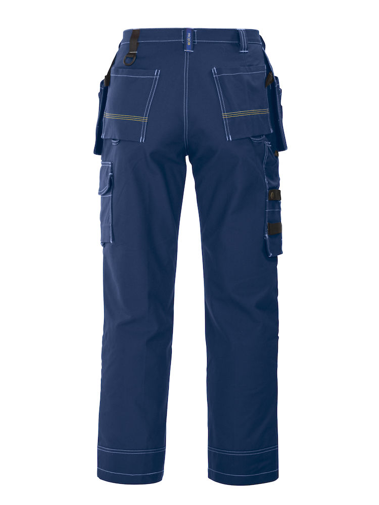 Dwie wiszące kieszenie na gwoździe, które można włożyć do kieszeni bocznych, jedna z kieszeniami dodatkowymi i jedna z uchwytami na narzędzia. Kieszenie na gwoździe zostały wzmocnione 100% włóknem Cordura®. Kieszenie na nogawkach z kieszenią na telefon komórkowy, kieszenią na długopis i kieszenią na narzędzia. Dwa regulowane uchwyty na młotek. Dwa uchwyty typu D-ring. Kieszeń na przymiar metrowy z kieszenią na narzędzia i uchwyt nożowy. Kieszenie na ochraniacze kolan wzmocnione włóknem Cordura®, otwierające się od wewnątrz, regulowana wysokość ochraniaczy kolan. Wyprofilowane kolana. Dół tylnej strony nogawek wzmocniony włóknem Cordura®. Ekstra szerokie tylne kieszenie. Tylne kieszenie oraz kieszenie na nogawkach posiadają pętle na system Inbags.