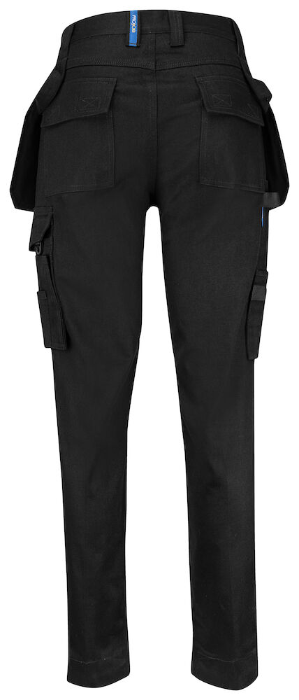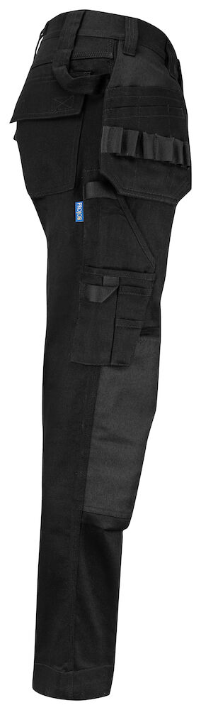 Spodnie do pasa z wytrzymałej bawełny o nieco niższej gramaturze dla lekkich spodni. Kieszenie kaburowe, które można schować w bocznych kieszeniach, jedna z dodatkową kieszenią i jedna z szlufkami na narzędzia. Tylne kieszenie z klapką i zapięciem na rzep. Składana kieszeń na miarkę z kieszenią na narzędzia z przyciskiem noża. Dwie pętle na młotek, po jednej z każdej strony. Wzmocnienia wewnątrz kieszeni kaburowych, kieszeni na miarkę składaną i na kolanach. Wstępnie zgięte kolana. Wewnętrzne kieszenie na ochraniacze kolan, regulowane w dwóch poziomach wysokości. Dzięki rozpruciu szwów u dołu spodnie można wydłużyć o 5 cm.