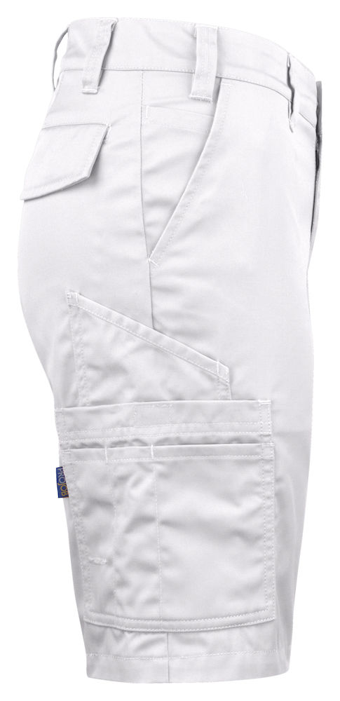 Lekkie spodenki z bocznymi kieszeniami. Kieszenie na nogawkach, po lewej stronie kieszeń z patką i zapięciem na rzep, po prawej stronie kieszenie na długopisy i narzędzia oraz jedna kieszeń na miarkę. Tylne kieszenie z patką i zapięciem na rzep.
