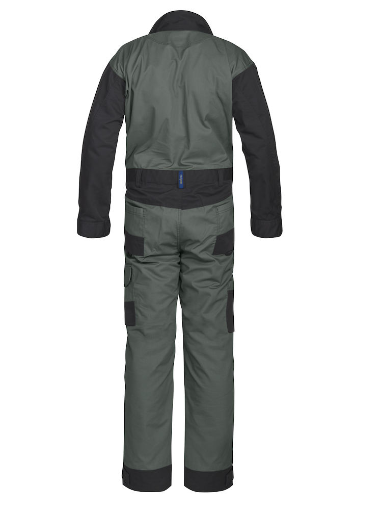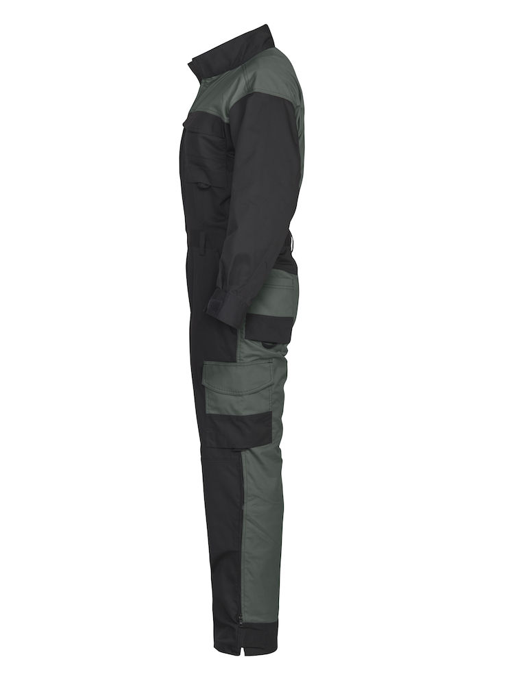 Dwukolorowy owerol z dwukierunkowym zamkiem błyskawicznym na całej długości do kołnierza. Maksymalna elastyczność ruchu ramion. Dwie kieszenie na piersi z patkami. Głębokie kieszenie z przodu, kieszeń na ważne dokumenty z zamkiem błyskawicznym po prawej stronie oraz dwie kieszenie tylne. Dwie kieszenie na nogawkach z miejscem na długopisy i telefon komórkowy. Kieszeń na przymiar metrowy. Zamek na nogawce do kolan. Gumka z tyłu paska i szlufki na pasek. Pętle do systemu Inbags pod kieszeniami na piersi, kieszeniami na nogawkach i kieszeniami tylnymi.