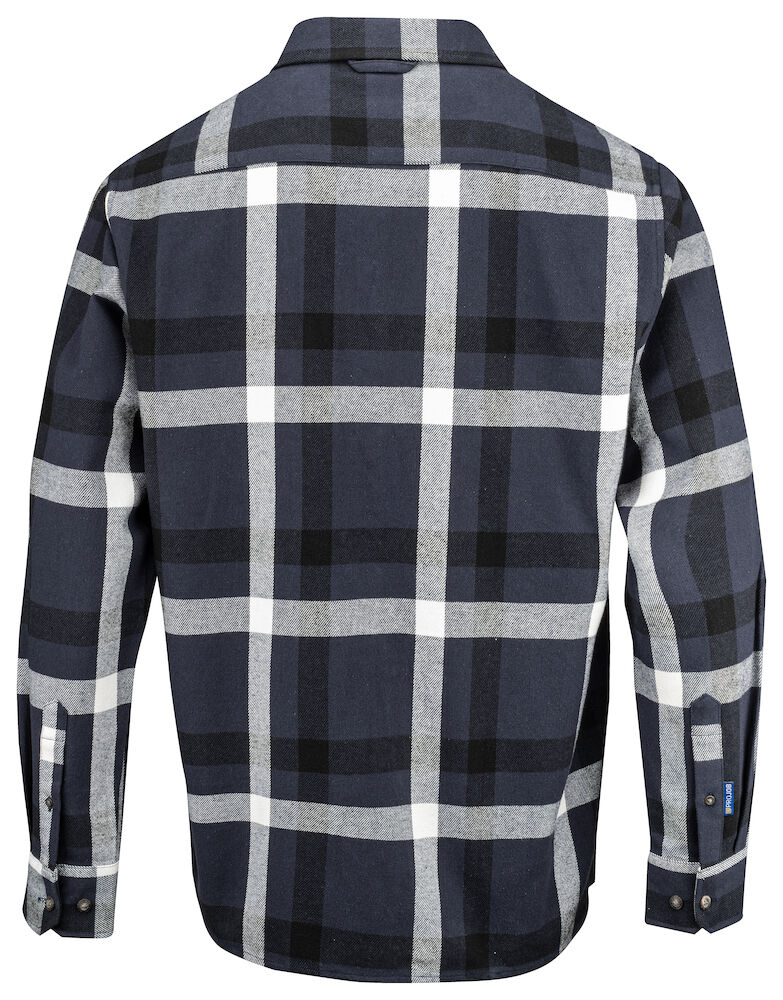 Flanelowa koszula z dwiema dużymi kieszeniami na piersi z patką. Mankiet regulowany za pomocą dwóch guzików.